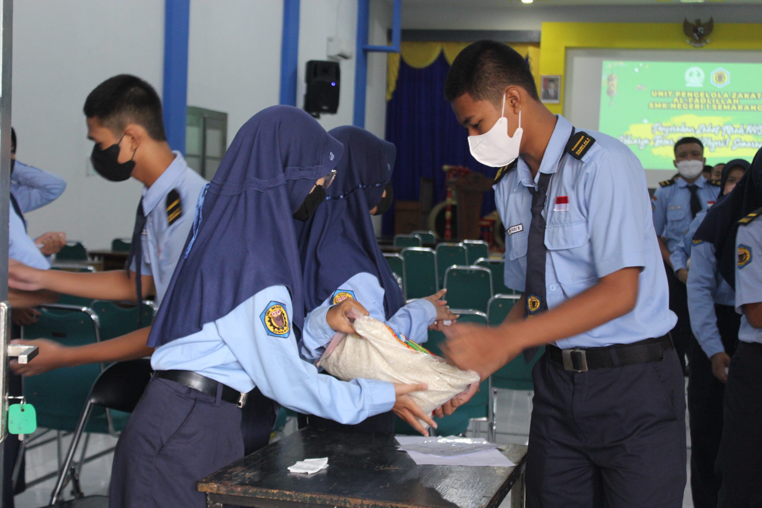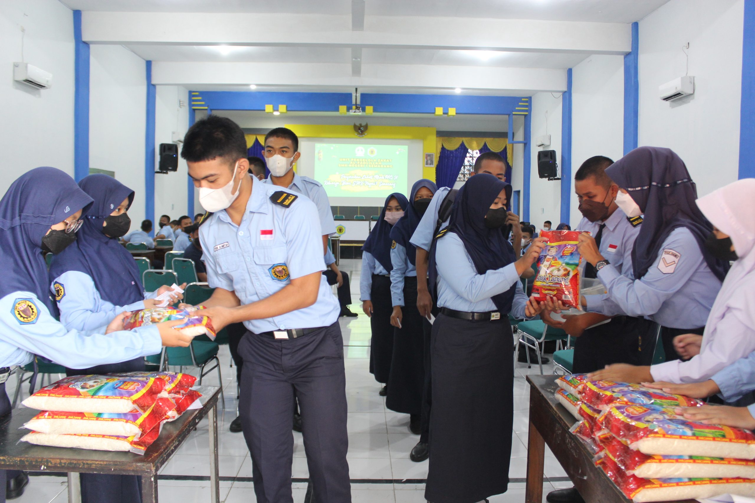 Seperti tahun – tahun sebelumnya, Stemsa selalu ikut andil dalam pengelolahan zakat fitrah, untuk disalurkan kepihak yang membutuhkan. Unit pengelolah zakat (UPZ) Al-Fadlillah sebagai panitia yang diketuai oleh bapak Drs. H. Agus Supriyadi, telah menerima zakat fitrah dari warga stemsa seperti guru, siswa dan karyawan berupa beras dan uang yang mulai dikumpulkan pada tanggal 7 April sampai 25 April 2022. Untuk penyaluran zakat fithrah sendiri telah dilaksanakan pada tanggal 27 April 2022 di Aula SMK Negeri Semarang yang dipimpin oleh kepala sekolah Bapak F.Budi Santoso, S.Pd, M.Si. Adapun yang menerima zakat fithrah yaitu warga di lingkungan sekolah yang membutuhkan serta warga di sekitaran sekolah yang perlu dibantu.