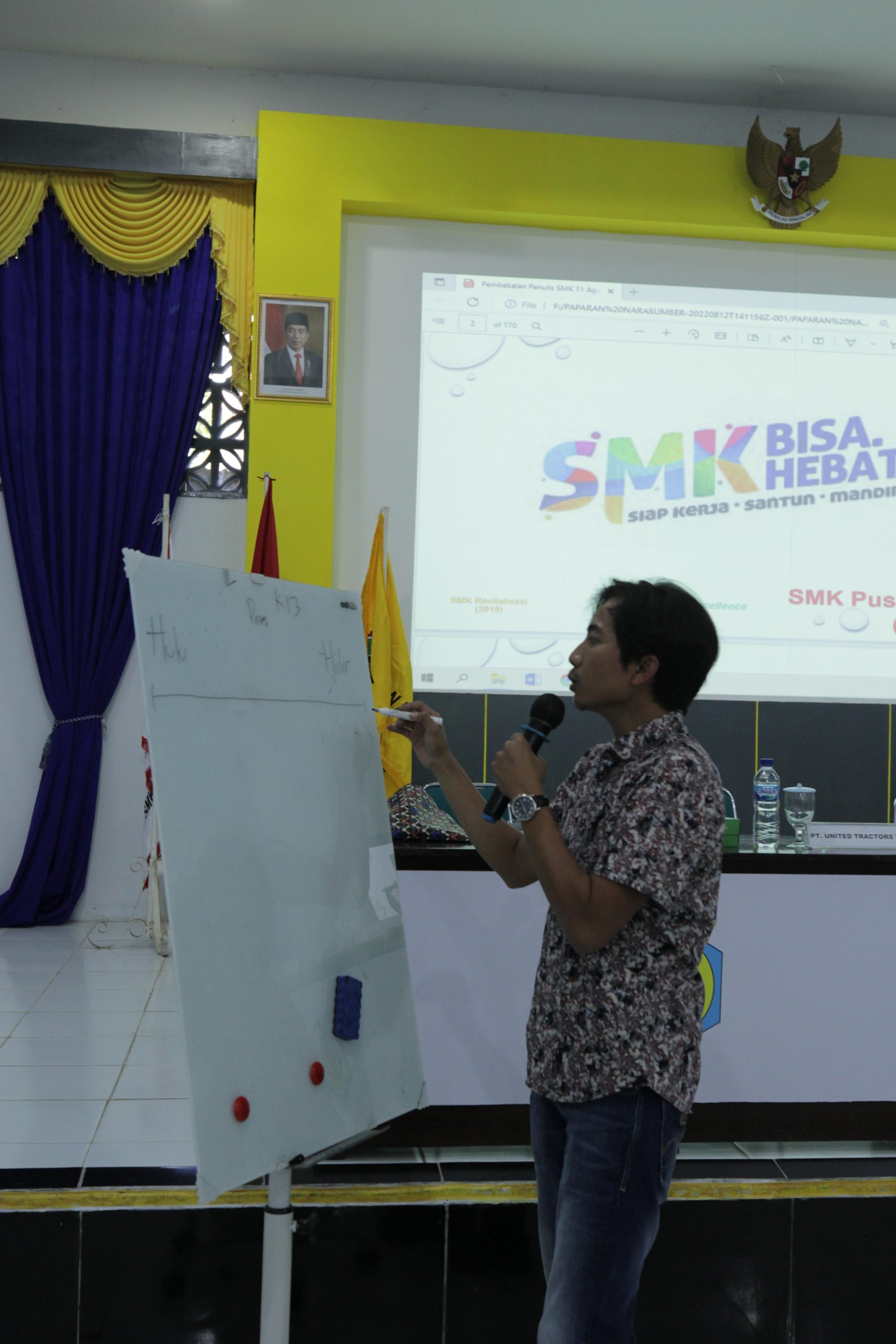 PT United Tractors Tbk yang diwakili oleh mas Dimas aryo wicaksono dalam paparannya menyampaikan bahwa guru harus memahami indikator capaian pembelajaran yang ada dalam kurikulum untuk bisa menyusun strategi pembelajaran yang harus dilakukan. Guru juga harus bisa menganalisa capaian pembelajaran yang ada untuk menyusun tujuan pembelajaran maupun alur tujuan pembelajaran. Pada kesempatan itu juga ditekankan kompetensi yang harus dikuasai siswa.Hard skill penting tetapi lebih utama adalah soft skill. Dengan catatan walaupun soft skill yang utama tetapi hard skill tidak boleh dilupakan. Pada level SMK, hard skill yang ditekankan adalah dasar-dasar kompetensi keahlian. Pengetahuan akan komponen, fungsi dan posisi lebih ditekankan untuk mendukung softskillnya.